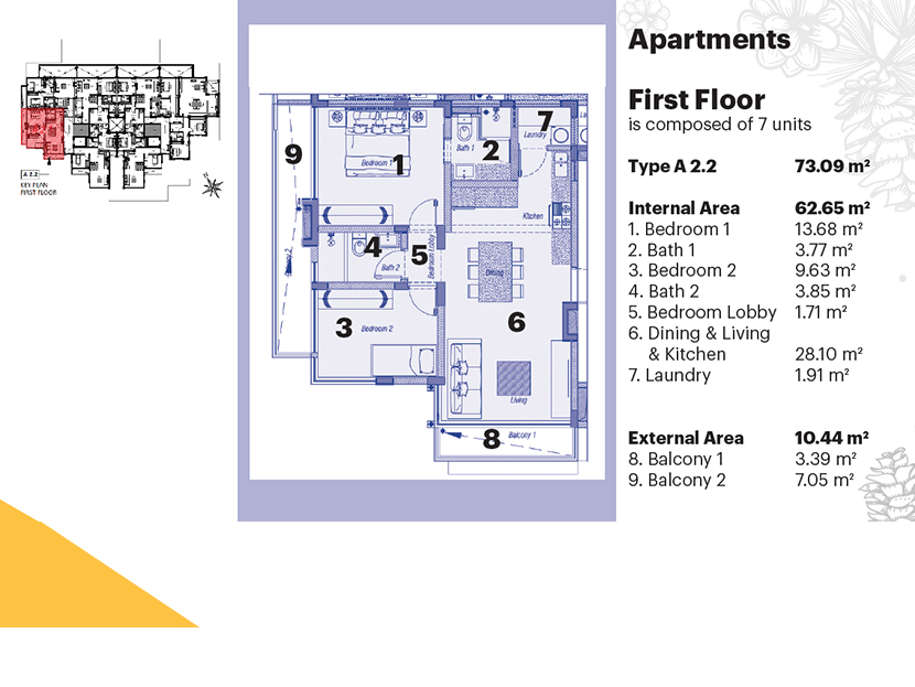 The project is near completion with delivery of the apartments by June 2026. It comprises of a ground + 4 storey building totalling 32 apartments (24 two-bedrooms, 4 three-bedrooms and 4 penthouses) .